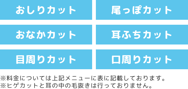 ※ヒゲカットと耳の中の毛抜きは行っておりません